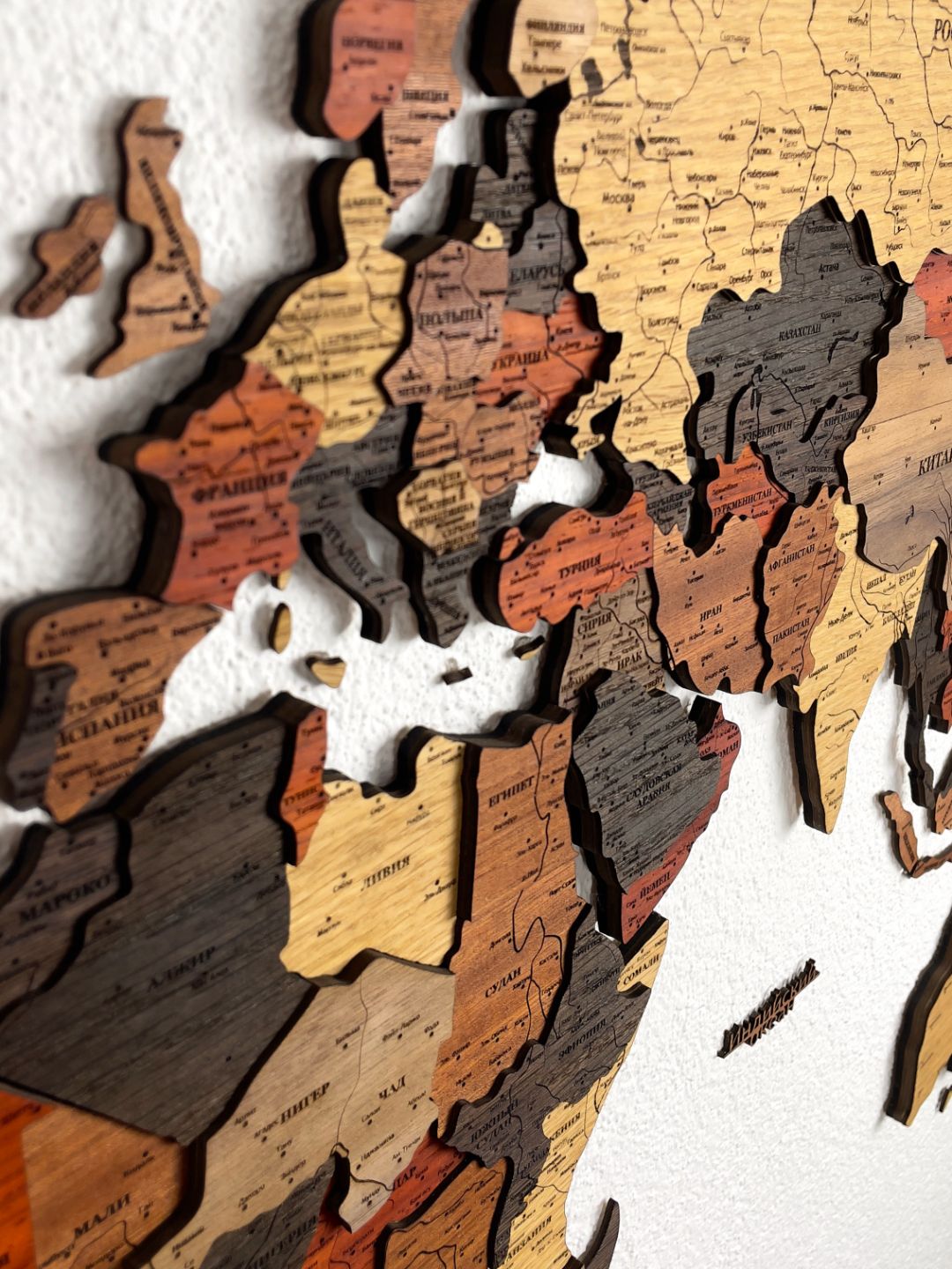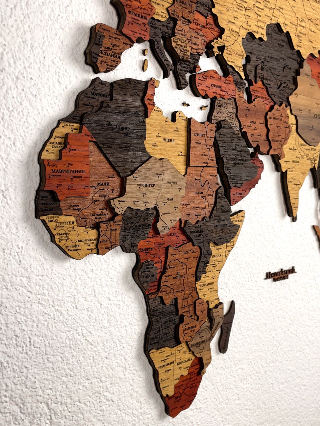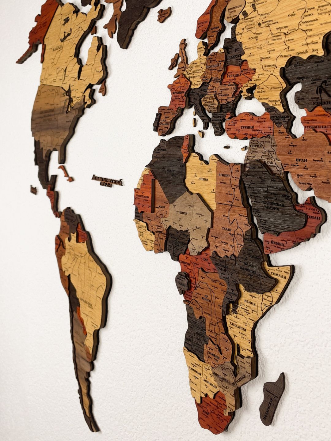 Карта мира из натурального шпона - практичное средство для изучения географии и путешествий.