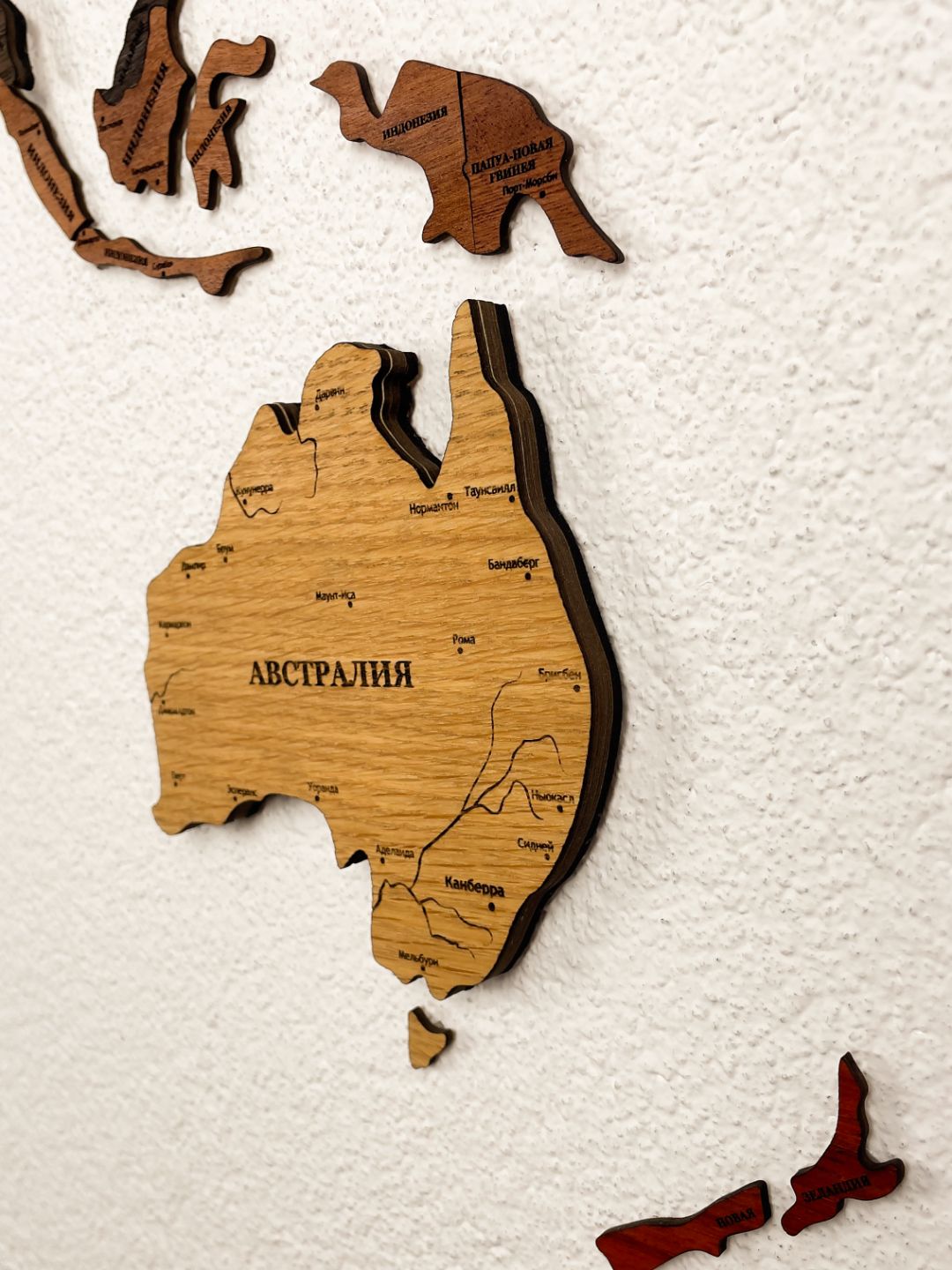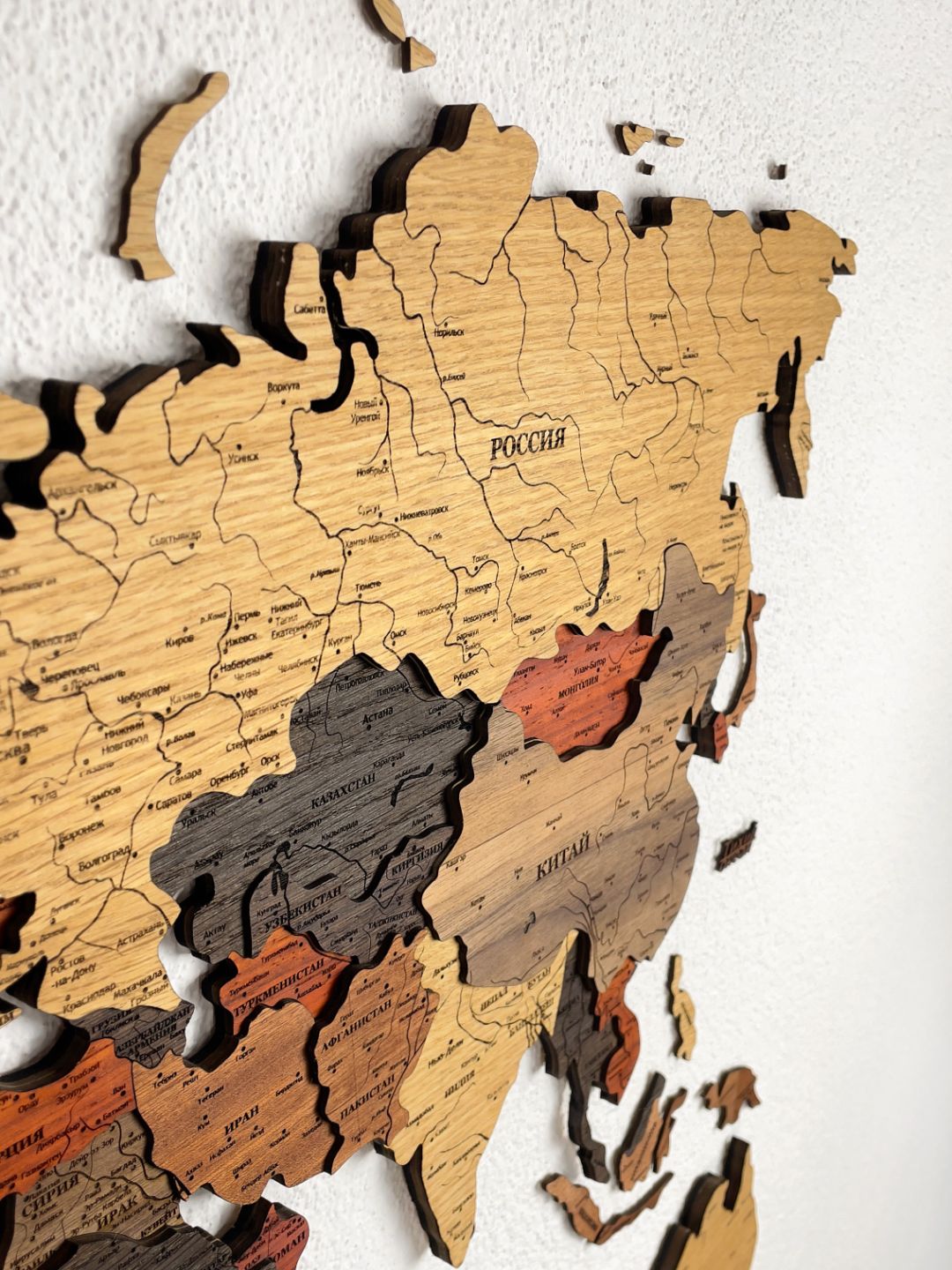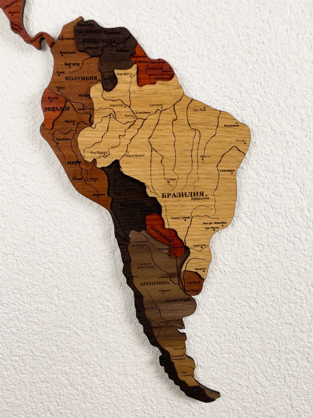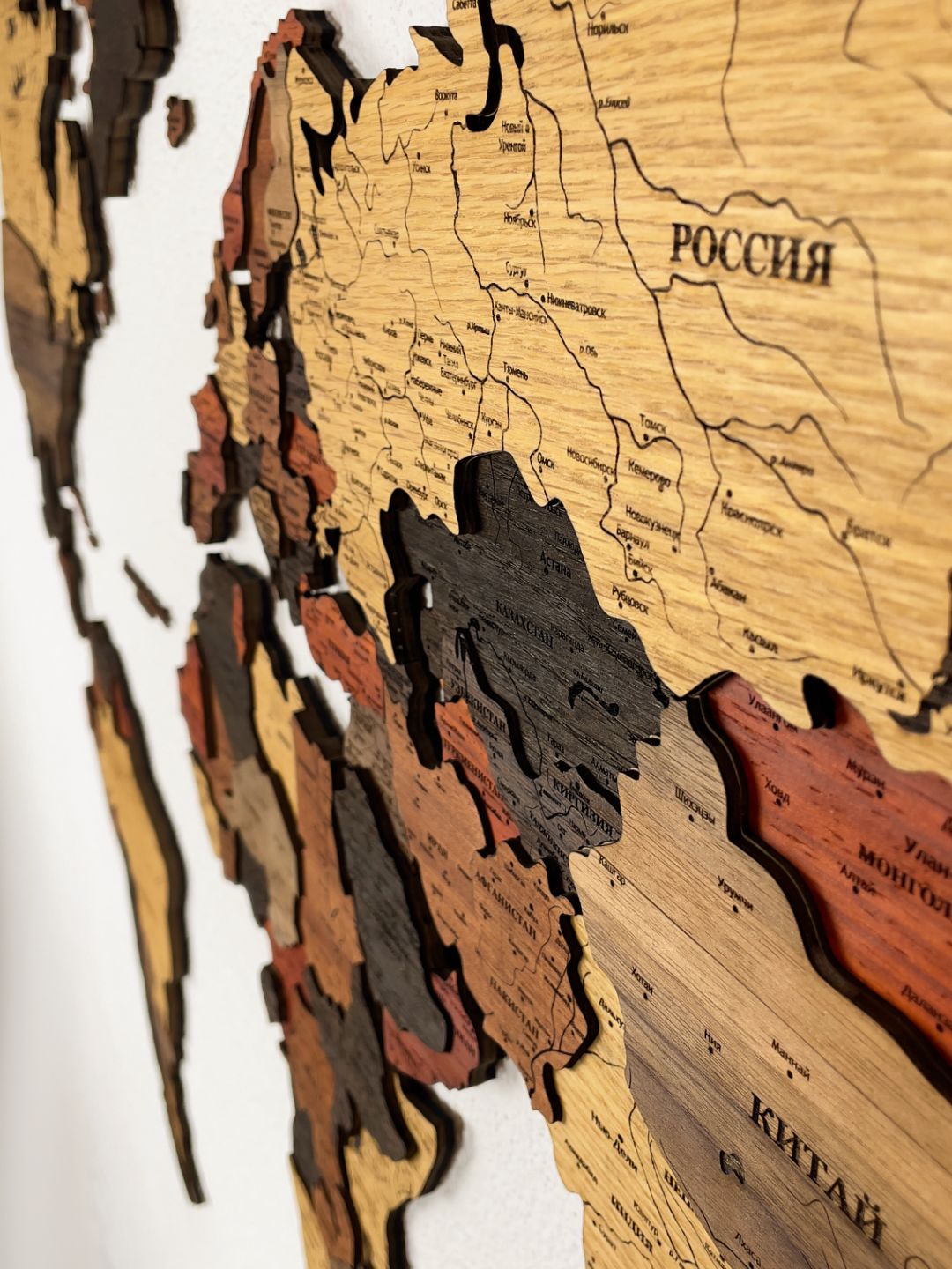 Карта мира из натурального шпона - практичное средство для изучения географии и путешествий.
